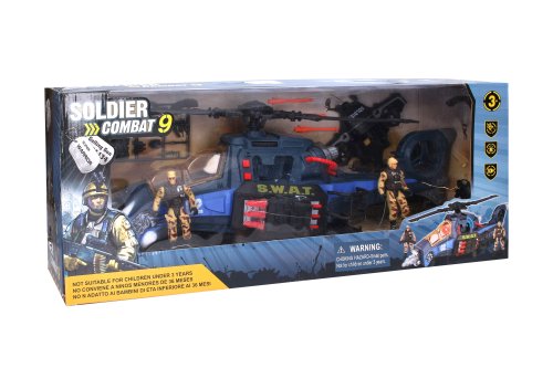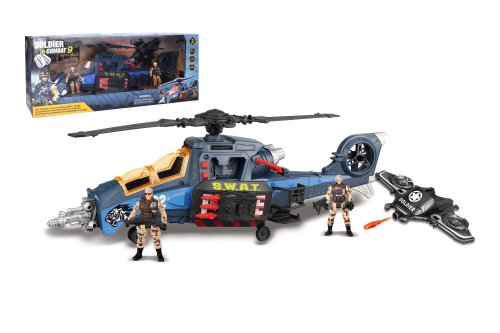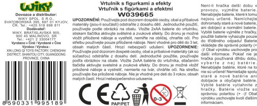 Vrtulník s figurkami a efekty. Dron střílející náboje. Velikost vrtulníku 60 cm, vojáků 10 cm. Světelné a zvukové efekty tlačítky na levém boku vrtulníku. 2xAA baterie do vrtulníku nejsou součástí. Obsah - vrtulník, dron, náboje, zbraně, 2 figurky vojáků. Obrázkový návod na používání na zadní straně obalu.