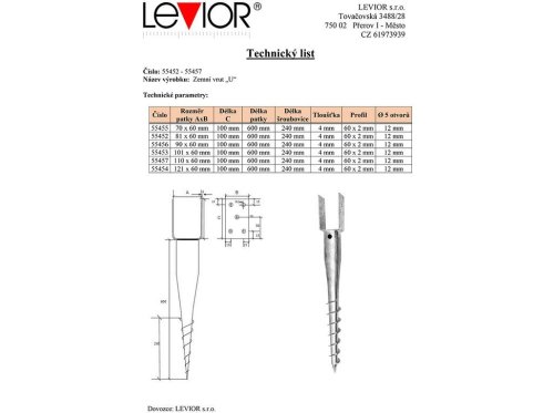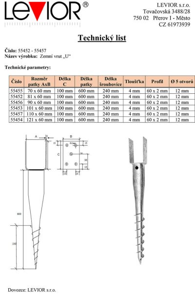 Písmeno "U" v názvu zemního vrutu udává šířku profilu U - patky pro uchycení dřevěného trámu. Vrut najde své využití na plotové sloupky, pergoly, terasy, informační tabule, garážová stání.