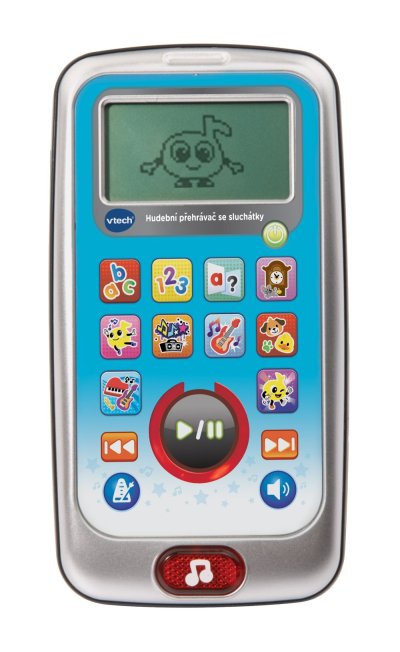 Vtech Hudební přehrávač se sluchátky™ učí děti poznávat čas, písmena a čísla. Zároveň rozvíjí logické uvažování a hudební cítění. Učí děti rytmus a poznávat hudební nástroje. Obsahuje 10 hudebních a tanečních her. Součástí jsou i bezpečná sluchátka s omezenou hlasitostí, tak aby nepoškozovala sluch dítěte.