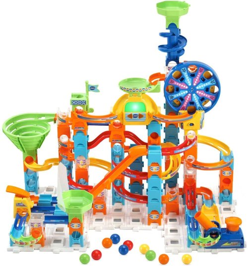 Zažijte napínavé kaskadérské kousky a vzrušující výzvy s Kuličkovou dráhou Blesk ADVENTURE SET. Tato stavebnice obsahuje: 135 různobarevných dílků a točící se ruské kolo. Součástí je i vířivý kužel, který spouští hudební a světelnou show. Vyzkoušejte vzrušující rampy, rychlé dráhy, extrémní vystřelovače a základny, které se snadno spojují dohromady. Barevně odlišené bloky a snadno pochopitelný průvodce vám pomůže postavit tři různé sestavy. Od začátečníků až po pokročilé nebo si vytvořit vlastní variantu.