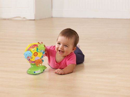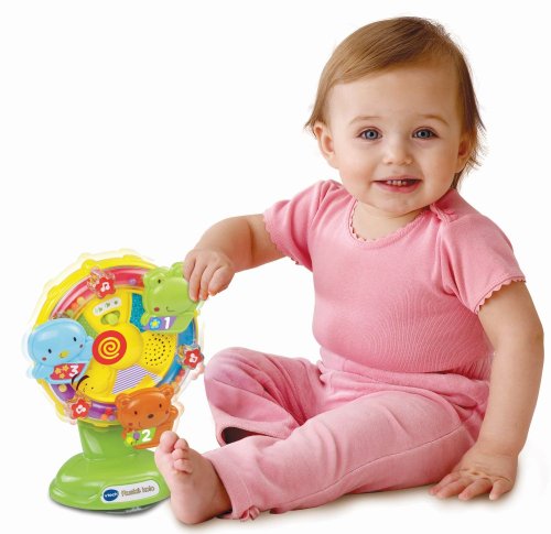 Povozit zvířátka na Ruském kole, tak to může být úžasná zábava! Hudební a vzdělávací hračka pro děti již od 6 měsíců s bezpečnostní přísavkou zabraňující nechtěnému sklouznutí ze stolu. Nenásilnou formou učí děti poznávat čísla, barvy i zvířátka. Podporuje správný vývoj jemné motoriky. Zábavné fráze rozšiřují slovní zásobu dítěte. Roztáčením kola a mačkáním tlačítek děti objevují zákonitosti akce a reakce. Přátelský hlas a zábavné fráze podporují zkoumání.