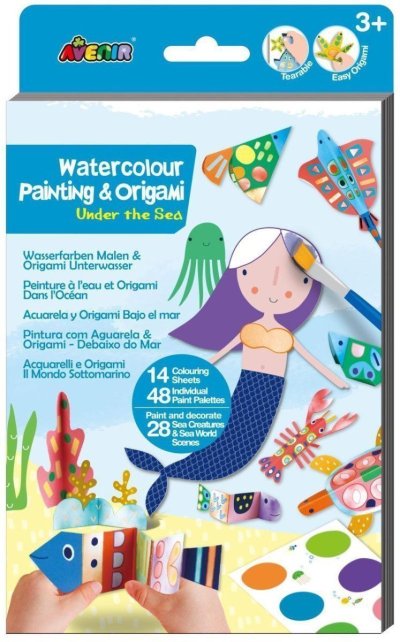 Origami a malování akvarelovými barvami. Obsahuje: 14 omalovánek, 48 barevných palet, štětec. Věk: 3+ VAROVÁNÍ! Nebezpečí udušení – malé detaily. Nevhodné pro děti do tří let.