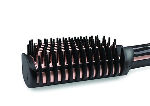 Vyhlazovací kartáč na vlasy pro snadný styling bez krepatých vlasů. Přirozený rovný efekt: díky širokému vyhřívanému povrchu v kombinaci s keramickými štětinami, plastovými štětinami a bočními hřebeny dobře klouže po vlasech, aby vypadaly přirozeně rovné, každý den, dokonce i na kudrnatých nebo vlnitých vlasech. Vyhřívané a zaoblené vnější okraje kartáče vám umožní upravit vaše konečky dovnitř nebo ven.