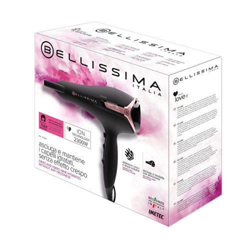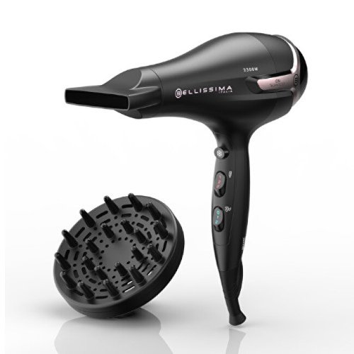Výkonný vlasový vysoušeč v černé barvě vysuší vaše vlasy během okamžiku. Proud studeného vzduchu účes dokonale zafixuje.