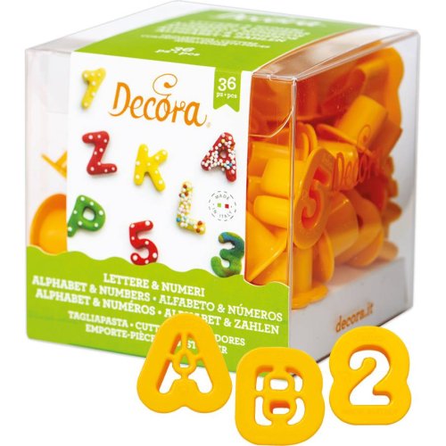 Vykrajovátka ve tvaru abecedy a číslic. V balení 36 ks.