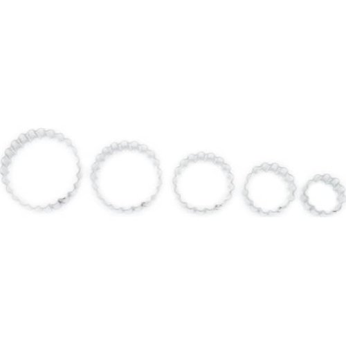 Souprava pěti vykrajovátek s různým průměrem ve tvaru ozubeného kolečka.