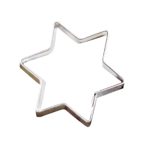 Vykrajovátko na cukroví ve tvaru šesticípé hvězdy vyrobené z pocínovaného plechu.