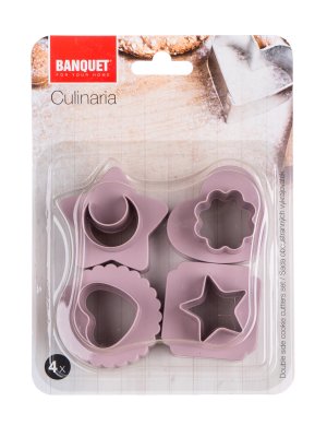 Sada oboustranných vykrajovátek CULINARIA obsahuje 4 tvary o velikostech 3 - 3,5 cm a 4 tvary 5 - 6 cm. Vykrajovátka jsou vyšší a tak padnou šikovně do ruky. Sada není vhodná do myčky na nádobí.