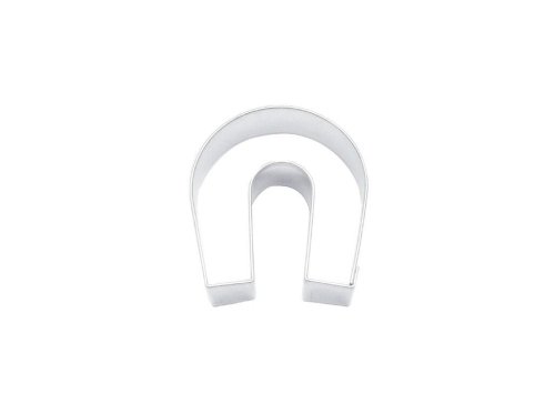 Vykrajovátko z pocínovaného kovu s tvarem podkovy.