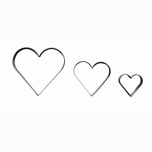 Sada 3 ks vykrajovaček tvar SRDCE různých velikostí. Balení na blistru. Materiál pocínovaný zdravotně nezávadný plech. Rozměry největší 118 a 111 mm, výška pásku 16 mm. Český výrobce. EAN 8594021417296