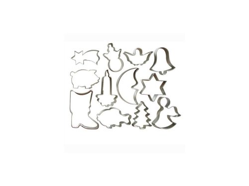 Sada dvanácti vykrajovátek s tematickým zaměřením na vánoční svátky je zhotovena z pocínovaného plechu a nabízí různé veselé motivy, mezi nimiž nechybí ani kometa, sněhulák, anděl na obláčku i jen tak poletující, ryba, stromek, škorně, hvěz.