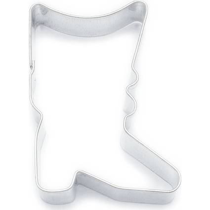 Vykrajovátko z pocínovaného plechu ve tvaru holínky.