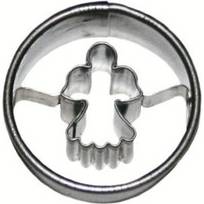 Vykrajovátko cukroví ve tvaru kolečko s vykrojeným středem podoby andělíčka.