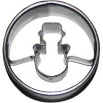 Vykrajovátko cukroví ve tvaru kolečka se sněhulákem uprostřed.