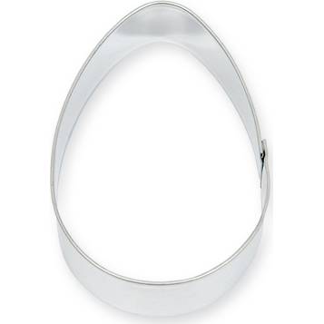 Vykrajovátko na cukroví ve tvaru vajíčka o velikosti 3,8 x 5,4 cm.
