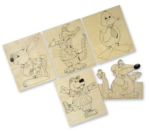 Šest dřevěných desek, každá o rozměrech 25x21,5 cm s nakreslenými předlohami veselých postaviček. Určené k vyřezávání a případnému následnému vybarvení. Minimální odběr 6 ks á 96 Kč, různé druhy, cena celkem 570 Kč. Do objednávky prosím pište počet kusů 6, děkujeme.