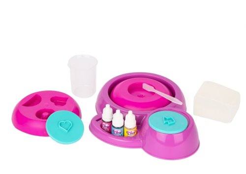 Vyrobte si vlastní roztomilé tvary mýdla pomocí super mýdlovače. Použijte kostky mýdla a smíchejte se třemi přiloženými barvami, abyste vytvořili nové barevné kombinace. Poté nalijte do zábavných tvarovaných forem a sledujte, jak vaše mýdla začínají získávat tvar. Věnujte jako dárek přátelům nebo jako speciální dárek jen pro vás.