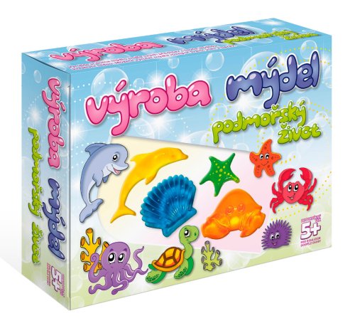 Kreativní sada pro výrobu mýdla. Balení obsahuje: blok čistého mýdlového základu, blok žlutého mýdlového základu, blok modrého mýdlového základu, blok červeného mýdlového základu, formičku, tyčinku na promíchávání a kádinku pro rozpuštění a rozmíchání. Možno použít v mikrovlnné troubě. Z jedné sady lze vyrobit 8 - 10 mýdel. Vhodné od 5 let.