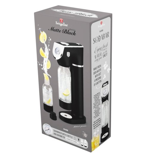 Výrobník sody Sodabar je designově dokonalý domácí přístroj na výrobu perlivých nápojů. Tento kompaktní a stylový přístroj je vyroben z nerezové oceli a polypropylenu a je navržen tak, aby se hodil do každé kuchyně. S rozměry 43,5 cm x 22 cm x 12 cm se vejde na jakoukoli kuchyňskou linku.<BR><BR>Výrobník sody Sodabar přichází se dvěmi lahvemi o objemu 1,0 L a 0,5 L. Přístroj je kompatibilní se standardními šroubovacími CO2 bombičkami jakékoliv značky (nejsou součástí balení).<BR><BR>Díky vestavěnému barometru můžete snadno nastavit úroveň perlivosti od velmi jemné až po silně perlivou sodu. A to vše stisknutím jediného tlačítka!<BR><BR>Výrobník sody Sodabar je ekologické řešení, které pomáhá snižovat produkci plastového odpadu. Navíc nepotřebuje elektřinu ani baterie, takže je ideální pro použití naprosto kdekoliv.<BR><BR>Vlastnosti <BR>- Materiál: nerezová ocel, PP <BR>- Velikost: 43,5 x 22 x 12 cm <BR>- 2 kusy vyměnitelné láhve s víčkem: 1,0 l a 0,5 l <BR>- Univerzální, standardní velikost bombiček CO2 (nejsou součástí dodávky) <BR>- Barometr - úrovně od super jemné po silnou perlivou limonádu<BR>- Čerstvá sodová voda pouhým stisknutím tlačítka <BR>- Není nutná elektřina ani baterie <BR>- Tlačítko pro přívod vzduchu <BR>- Dvojité bezpečnostní uvolnění tlaku udržuje proces bezpečný a čistý <BR>- Ekologické řešení - pomáhá snižovat množství plastového odpadu<BR>- Barva: matná černá - stříbrná<BR>- MATTE BLACK Collection<BR>- značka: Berlinger Haus