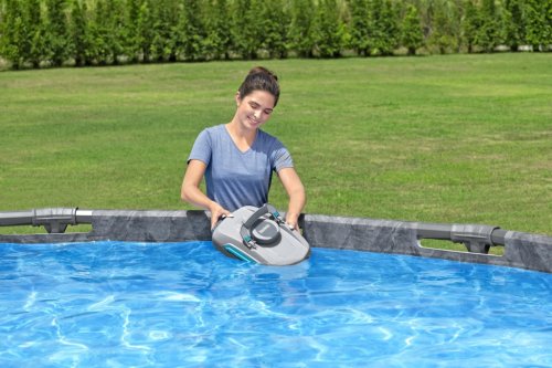 V balení se kromě samotného vysavače nachází také sběrač nečistot, nabíječka a praktická sada pro vyzvednutí zařízení z vody. Díky jednoduchému systému západek je sestavení i údržba velmi snadná a rychlá. Celkově robotický bazénový vysavač Aquatronix představuje praktický a efektivní nástroj pro udržení čistoty nadzemních bazénů bez nutnosti manuálního čištění.