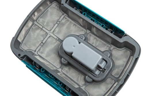 Zařízení je vybaveno dvěma vyměnitelnými tělesy vysavače a sběrače nečistot, což umožňuje flexibilní využití podle aktuálních potřeb čištění. Nádoby na nečistoty jsou snadno vyjímatelné a čistitelné, přičemž vysavač pojme až 3,5 litru a sběrač nečistot dokáže pojmout až 6 litrů nečistot. Robustní plastová konstrukce zajišťuje dlouhou životnost a odolnost vůči vodnímu prostředí, přičemž zařízení je vybaveno kolečky a směrovými tryskami, které optimalizují jeho pohyblivost a umožňují mu snadno měnit směr po nárazu na stěny nebo překážky.