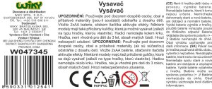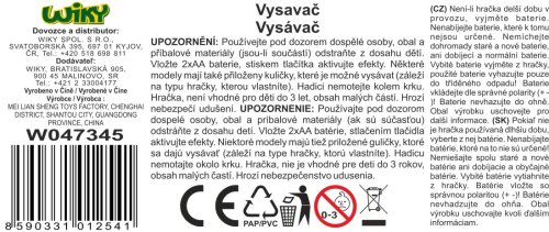 Vysavač se světelnými efekty. Velikost 15 cm. Vydává světelné efekty. Baterie 2xAA nejsou součástí balení. Přesné rozměry 15x11x9 cm.