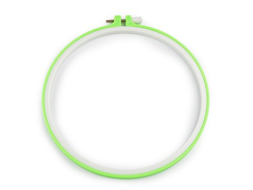 Vyšívací kruh je vyrobený z plastu. Je opatřen kovovým stahovacím šroubkem, pomocí něhož přichytnete vyšívací předlohu. [Kovový stahovací šroub se může mírně lišit.]