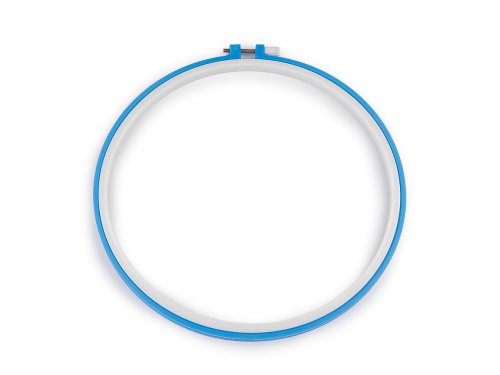 Plastový vyšívací kruh je opatřený kovovým stahovacím šroubkem, pomocí něhož se uchytí vyšívací tkanina.