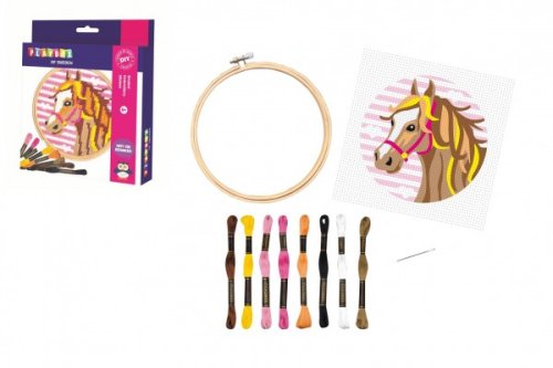 Sada obsahuje: kanavu 18 x 18 cm, 8 balvnek, jehlu, předlohu a bubínek o průměru 15 cm.