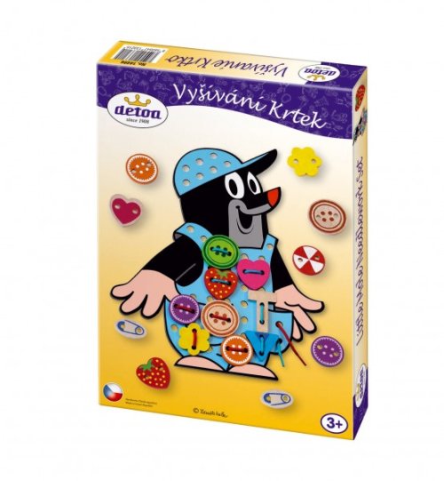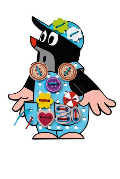 Jednoduchá provlékací postavička Krtečka procvičí jemné prstíky nejmenších. Prošívací postavička je vyrobená ze dřeva a je doplněna o provlékací tkaničku a knoflíky. Pro děti od 3 let.