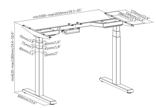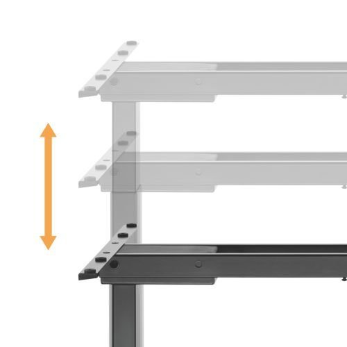 HLAVNÍ VLASTNOSTI: • Pohon se 2 elektromotory umožňuje snadné přepínání mezi sezením a stáním stiskem jediného tlačítka • Výškový rozsah 620 - 1280 mm umožňuje uživateli přizpůsobit si výšku přesně podle svých potřeb • Šířkový rozsah 1000 - 1700 mm umožňuje uživateli přizpůsobit si rozměr stolové desky podle svých potřeb v rozsahu rozměrů 1100~2000x700~900mm • Vysoká nosnost až 100 kg -bez problémů unese pracovní desku, monitor, počítač a další vybavení • Dvojitá příčka snižuje otřesy a případné kolíbání pracovní desky. Zvyšuje stabilitu stolu při práci. • Paměť s možností uložení až 3 individuálních nastavení • Stabilní a odolná konstrukce -pevný kovový rám zajišťuje dlouhou životnost a bezpečné používání • Plynulý a tichý chod - motor pracuje spolehlivě a bez rušivého hluku, úroveň hluku při posunu ?50dB • Snadná instalace - jednoduchá montáž rámu na desku dle vašeho výběru