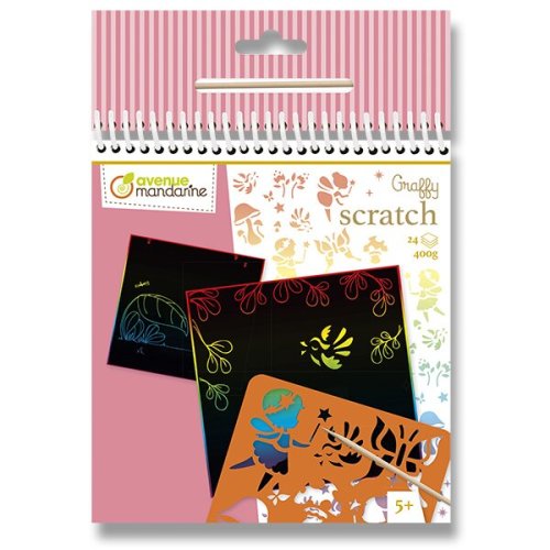 Vyškrabávací obrázky s motivy víl skryté pod černým podkladem. Pomocí odnímatelné šablony s obrysy obrázků a dřevěného škrabátka (je součástí balení) následně vytvořené a vyškrabané obrázky odhalíte. Omalovánky obsahují 24 listů. Gramáž 400 g.