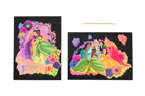 Vyškrabávací obrázky Disney Princes – balení obsahuje dva vyškrabávací obrázky o rozměrech 26×19,5 cm + vyškrabávátko.