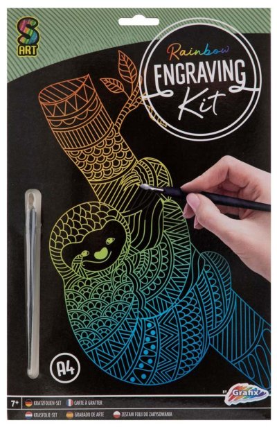 Vyškrabávací sada – 3 různé obrázky A4 – balení obsahuje obrázek + rydlo.
