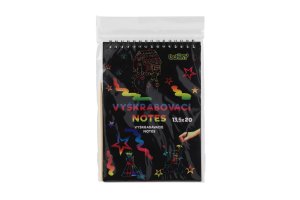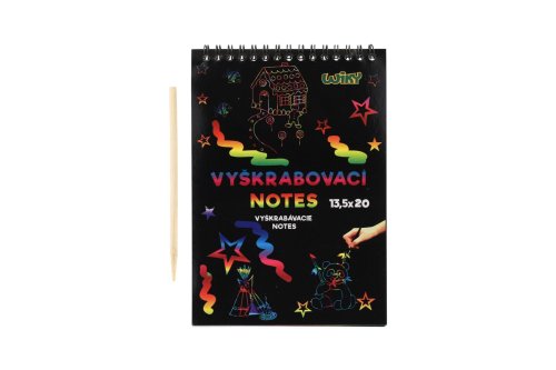 Kreativně se vydovádějte na vyškrabovacím notesu, který má rozměry 13,5x20 cm. Na jednotlivých listech, můžete pomocí vyškrabovacího pera vytvářet různé pestrobarevné obrázky. Vhodné pro děti od 3 let.