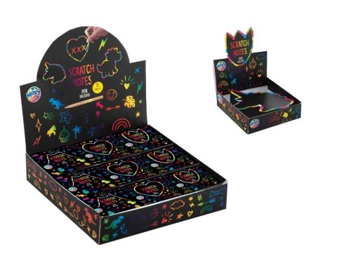 Vyškrabovací notes/papíry – Baleno v papírové krabičce, ve které najdeš 75 listů k vyškrabání a vyškrabávací pero, 9x9x4 cm