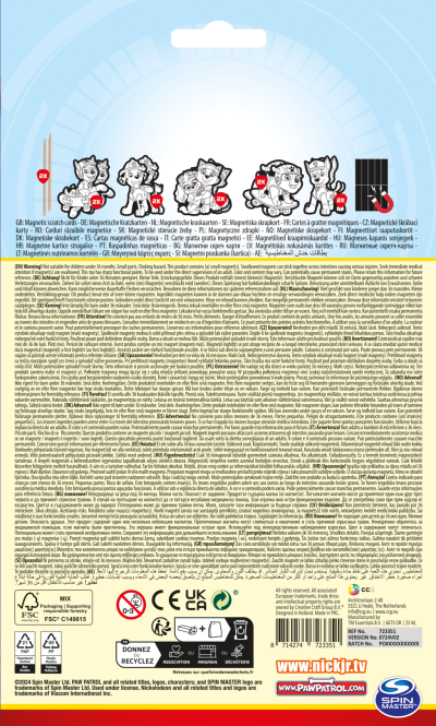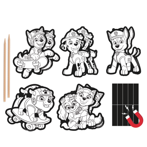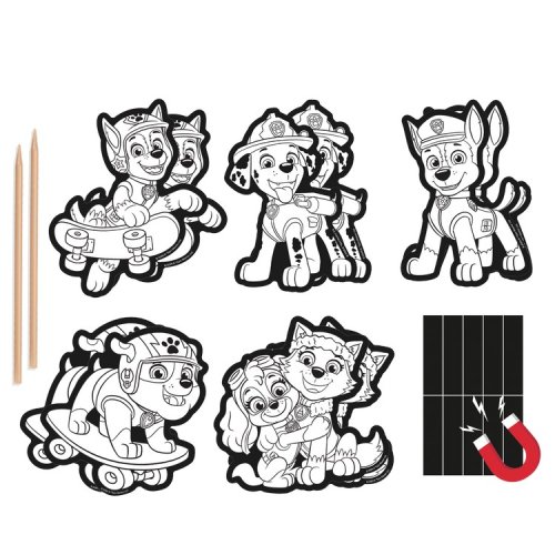 Vyškrabovací obrázky s motivem postaviček z pohádky Tlapková patrola. V balení 10 obrázků, 2 dřevěná pera a arch s magnety. Rozměry balení 15x25 cm. Věk 3+