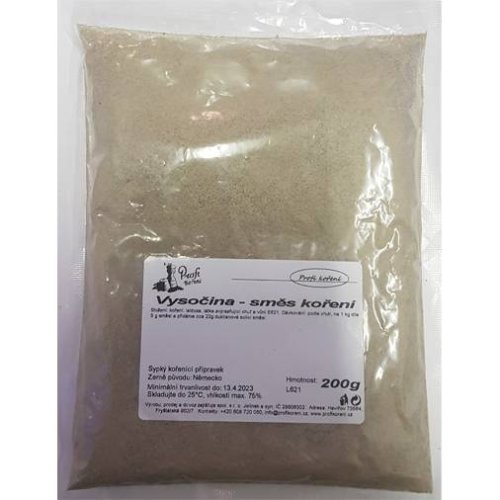 Vysočina je směs koření na známý salám. Balení 200 g.