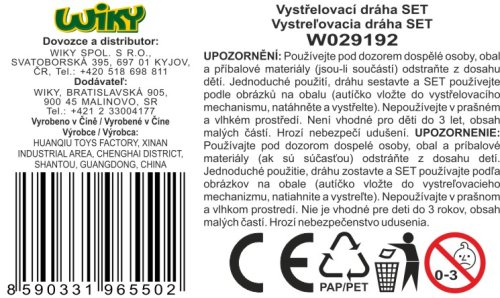 Vystřelovací dráha dino se 4 auty. 4 kovová auta. Rozměry 45x12x16 cm. Sestavte dle obrázku na zadní straně obalu.