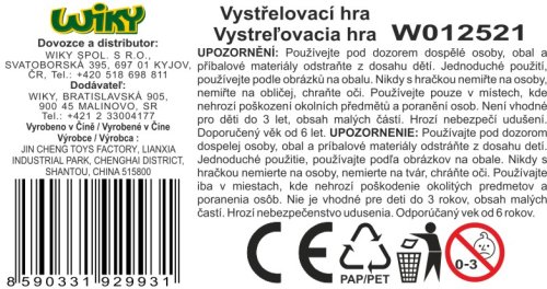 Vystřelovací hra s terčem. Obsahuje prak, 3 šípy, 3 terče. 2 varianty - terč kelímky, terč karty s podstavci.