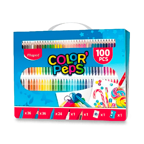 Souprava 100 kusů pastelek, fixů, voskovek a příslušenství pro začínající umělce v praktickém balení v boxu.