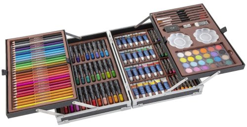 Velký kovový kreativní kufřík plný pastelek, voskovek, vodovek, temper, štětců…. Kufřík obsahuje 145 dílů.