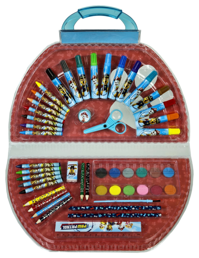 Kreslířská souprava pro děti v plastovém kufříku s motivem Tlapkové patroly. Sada obsahuje: 6 pastelek, 12 fixek, 12 voskovek, 12 vodovek se štětečkem, gumu, 2 tužky, ořezávátko, pravítko, nůžky. Vhodné pro děti od 3 let.