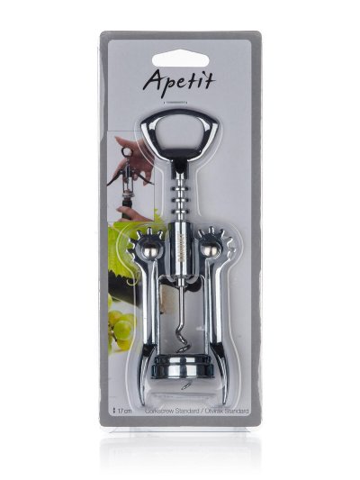 Otvírák standard APETIT, křidélkový systém - vývrtka má páková křídla, která po stlačení pomohou snadno vytáhnout špunt z lahve.