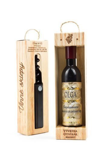 Vývrtka ve tvaru vinné lahve s originálním potiskem viněty je vhodným dárkem pro všechny milovníky vína.