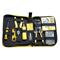 Sada v praktickém pouzdru obsahuje: • 1 ks – stripovač na UTP/FTP kabely, narážeč • 1 ks – UTP tester • 1 ks – plastová krabička • 1 ks – konektory (5 ks RJ45, 5 ks RJ11) • 1 ks – šroubovák plochý • 1 ks – narážeč KRONE, 110 • 1 ks – kleště UTP krimpovací RJ45, RJ11, RJ12, konektory typ 8P8C, Cat5, Cat5e, Cat6, Cat3 4P4C, 6P6C • 1 ks – boční štípací kleště • 1 ks – vázací pásky • 1 ks – pouzdro na nářadí