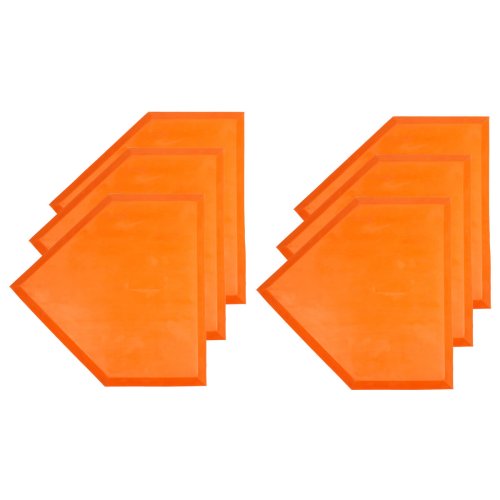 Oranžový nepravidelný pentagon, s dvěma paralelními stranami, z nichž každá je kolmá k základně, z odolné lisované gumy se zkosenými hranami. Přesně takhle vypadá domácí baseballová meta Merco Waffle Plate, jenž Vám dobře poslouží na venkovním hřišti i ve vnitřních prostorech, při tréninku i při důležitých zápasech. 425 x 425 mm Součástí šestikusové sady s basebalovými domácími metami Merco Waffle Plate Set nejsou upevňovací hřeby.
