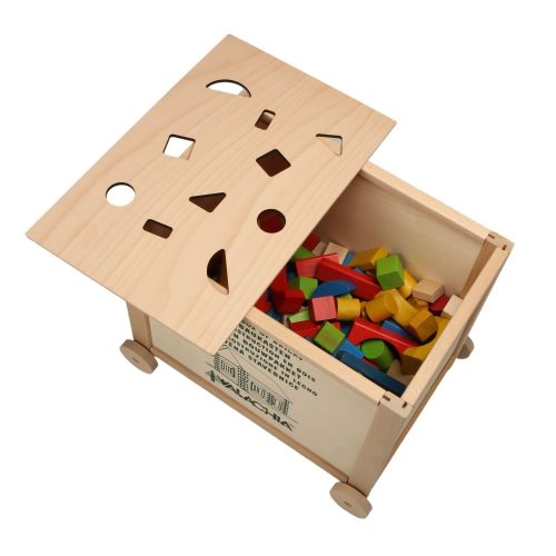 Praktická dřevěná bedna v přírodním designu je vyrobena z bukového dřeva a překližky a je opatřena dřevěnými kolečky pro snadnější manipulaci. Ukrývá v sobě 300 barevných kostek nejrůznějších tvarů, které přesně padnou do otvorů ve víku. Při vkládání kostek se rozvíjí nejen zručnost a logické uvažování, ale děti si také procvičí rozpoznávání barev a naučí se pojmenovat různé tvary. A navíc dřevěné kostky poslouží také jako zábavná stavebnice. Tato velká vkládačka nabízí nejen bezpečnou a zábavnou hru, ale i udržitelnou alternativu k plastovým hračkám, a přibližuje dětem přírodní materiály a českou řemeslnou tradici. Dřevěná bedna je vhodná do dětských pokojíčků, do mateřských škol nebo školních družin. Hlavní vlastnosti: rozvíjí zručnost a logické uvažovánípodporuje kreativitu bedna s víkem s otvory a 300 vkládacích tvarůnízká obtížnost (začátečník)precizní a pečlivé zpracováníz odolného bukového dřevavyrobeno v České republice