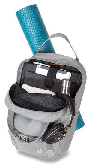 hlavní komora s kapsou na tablet a polstrovanou kapsou pronotebook do velikosti 13“ hlavní komora s organizérem: síťovaná kapsa na zip, otevřená kapsa, kapsičky na psací potřeby, karabina a přídavná síťovaná kapsa na zip přední kapsa na zip anatomicky tvarované a prodyšné ramenní popruhy polstrovaná záda nastavitelný hrudní popruh vhodný na nošení podložky na jógu díky dvěma nastavitelným popruhům boční elastické kapsy na lahve s pitím