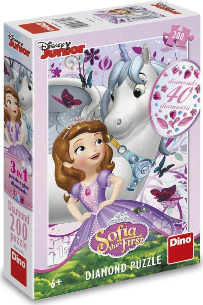 Puzzle ze série Diamond puzzle - poskládejte obrázek, slepte ho přiloženým lepidlem a dozdobte podle své vlastní fantazie 40 samolepícími třpytivými kamínky. Určeno pro děti od 6 let. Rozměr složeného puzzle cca 33 x 47 cm